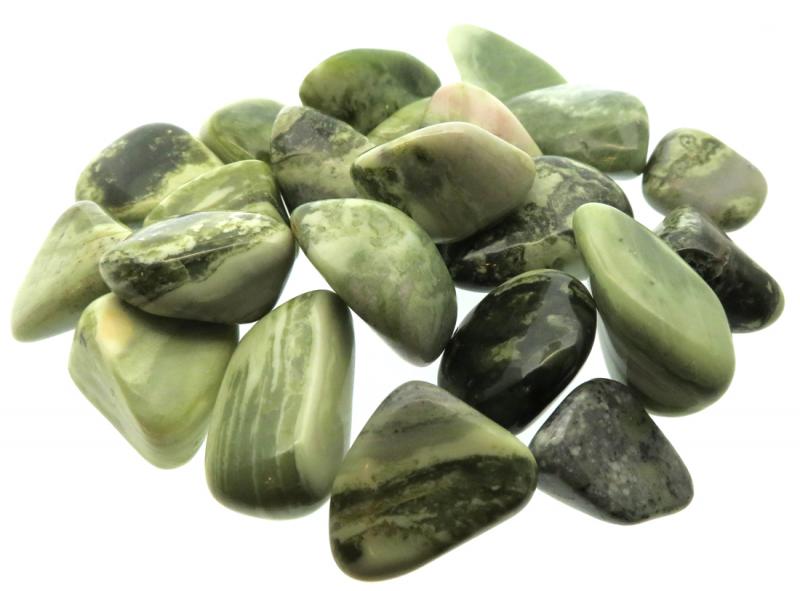 This rare stone is a mix of Green Serpentine and Chrysotile from South Africa.