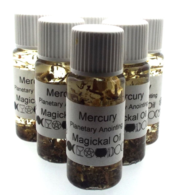In magickal workings Mercury offers knowledge and is an excellent choice for students. It expands your mind, making you quick and alert. I like to use Mercury oil when I am feeling a little under the weather, it soon picks me and and makes me ready to face the world again.
