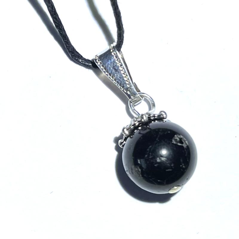 11mm Black Tourmaline Gemstone Sphere Pendant