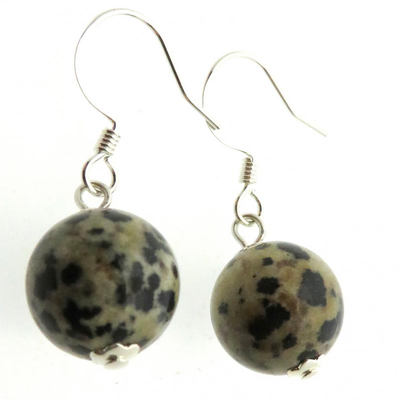 Dalmation Jasper fishhook earrings. Approx size 12x25mm.