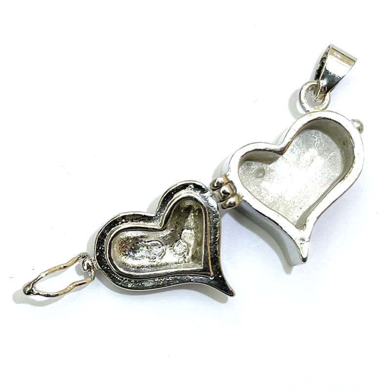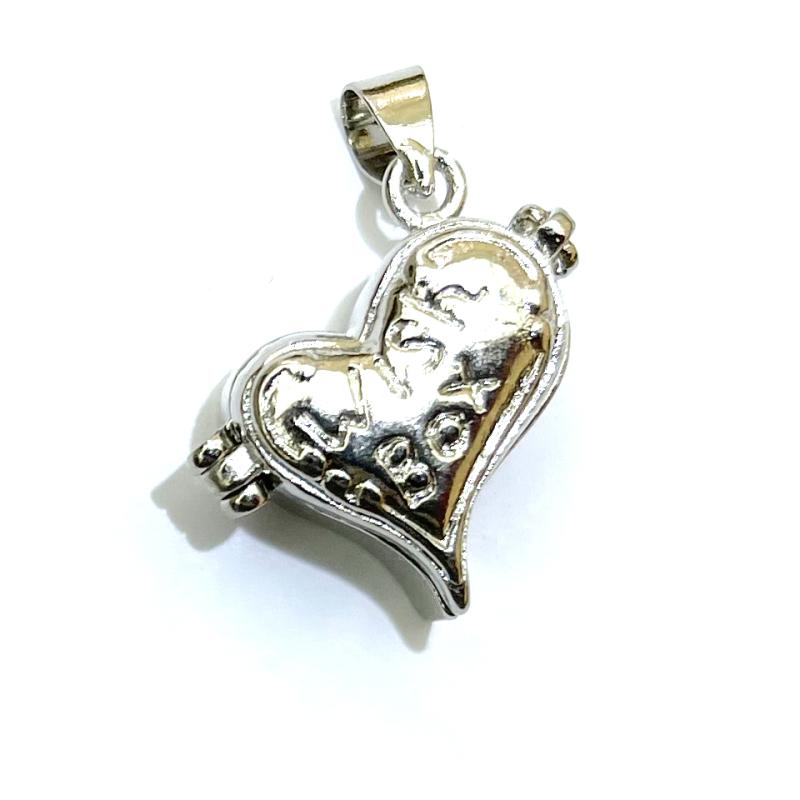 A single base metal opening heart charm with the words 'wish box' on the front, with a bail for attaching components, measures approx 15x15x11mm (images show front and open locket).