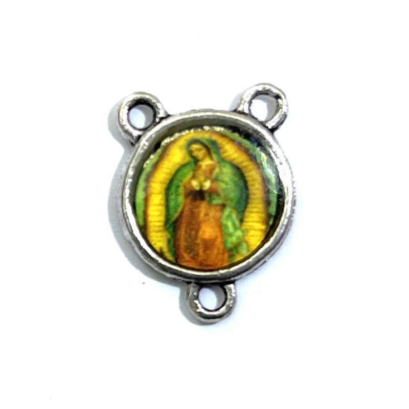 A single base metal small Rosary centrepiece, from Rome Italy with 3 rings for attaching components, measures approx 19x14x3mm (suitable for Rosary making, 2nd image shows reverse).