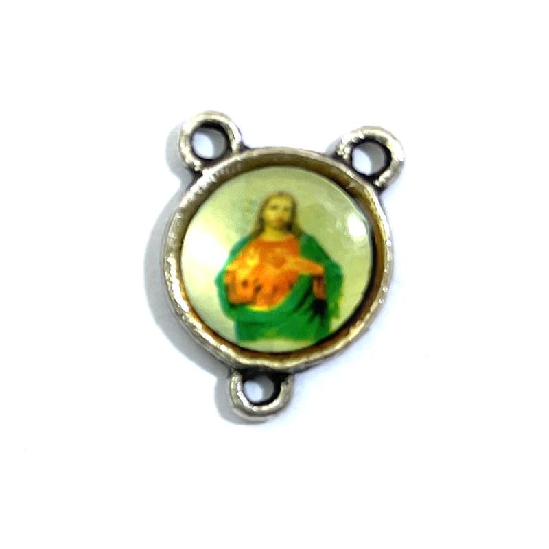 A single base metal small Rosary centrepiece, from Rome Italy with 3 rings for attaching components, measures approx 19x14x3mm (suitable for Rosary making, 2nd image shows reverse).