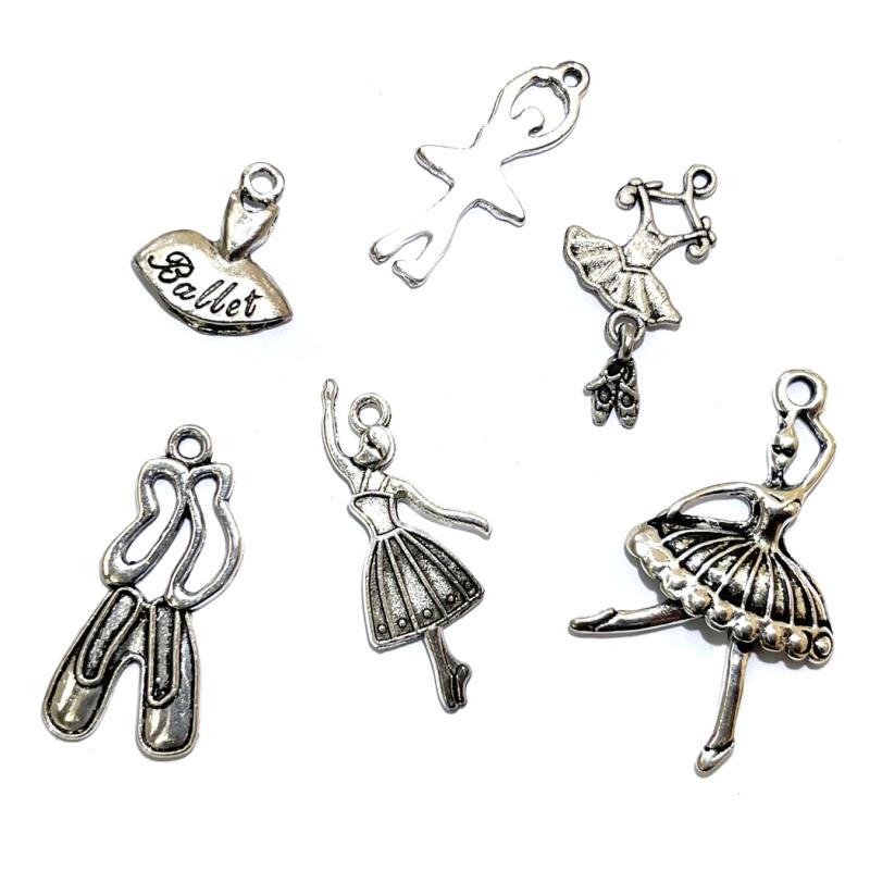 A set of six Ballet themed base metal charms.