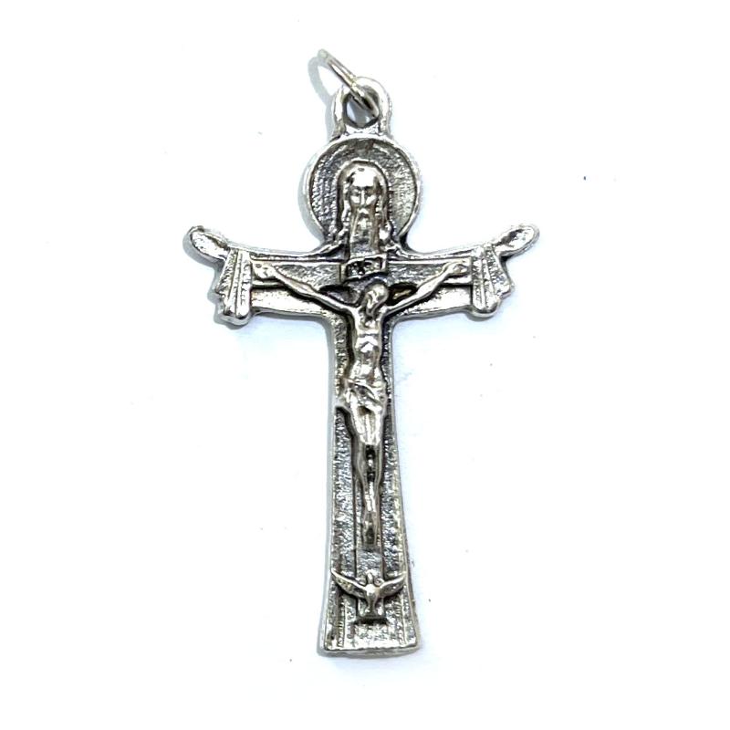 A single base metal Crucifix charm from Rome, Italy with ring for attaching components, measures approx 39x23x2.5mm (suitable for Rosary making, 2nd image shows reverse).