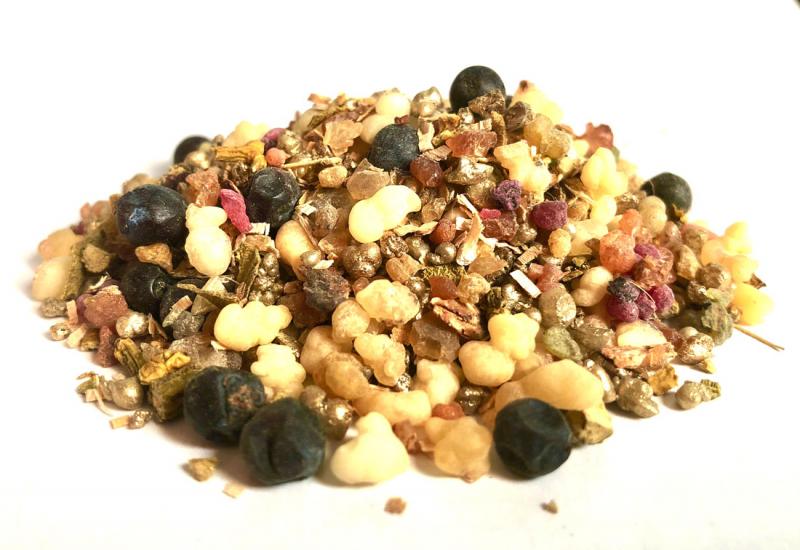 A special blend of incense resin granules including Frankincense and Myrrh, and organic herbs: Oak Bark, Juniper Berries and Mistletoe to celebrate Yule.