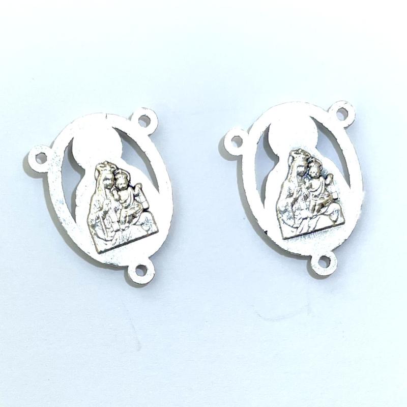Two base metal small Rosary centrepiece's, from Rome Italy with 3 rings for attaching components, measures approx 24x17x3mm (suitable for Rosary making, 2nd image shows reverse).