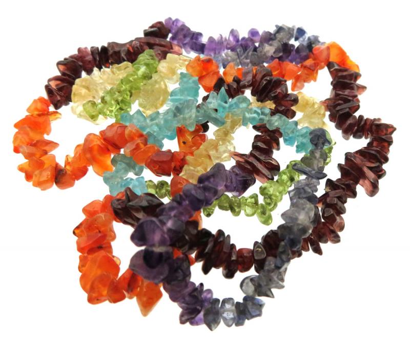 On this necklace you have Garnet, Carnelian, Citrine, Peridot, Blue Topaz, Iolite and Amethyst.