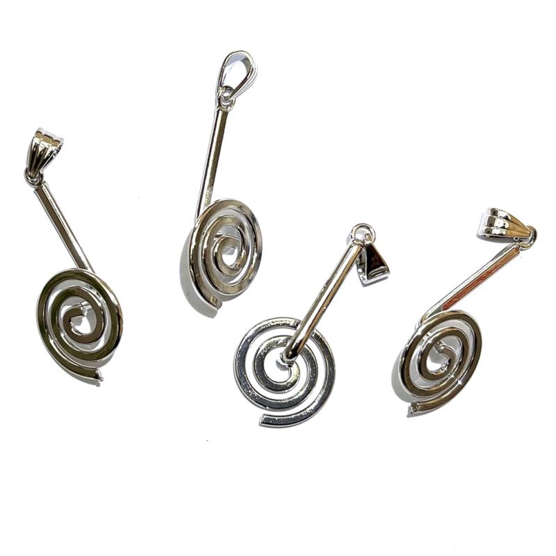 A pack of four base metal spiral charms with bail at the top for attaching components, each measures approx 36x15x6mm.