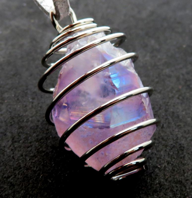 Amethyst Aura is created by bonding Platinum and Magnesium to the Crystal creating an iridescent colourful sheen.