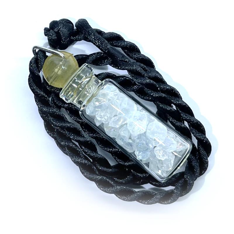 Glass spell bottle full of genuine Gemstone chips. Our gemstone chips are all natural and undrilled so the energies remain pure.