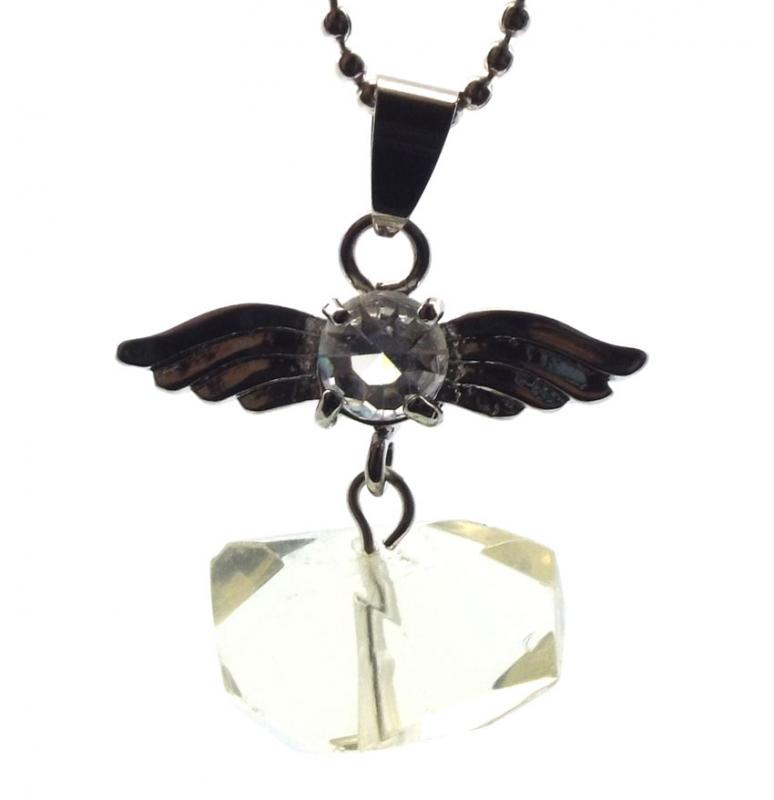 An 18x10mm approx Lemon Quartz nugget and angel wing pendant with crystal. Complete with a 18inch ball chain, measures Approx 24x32mm.