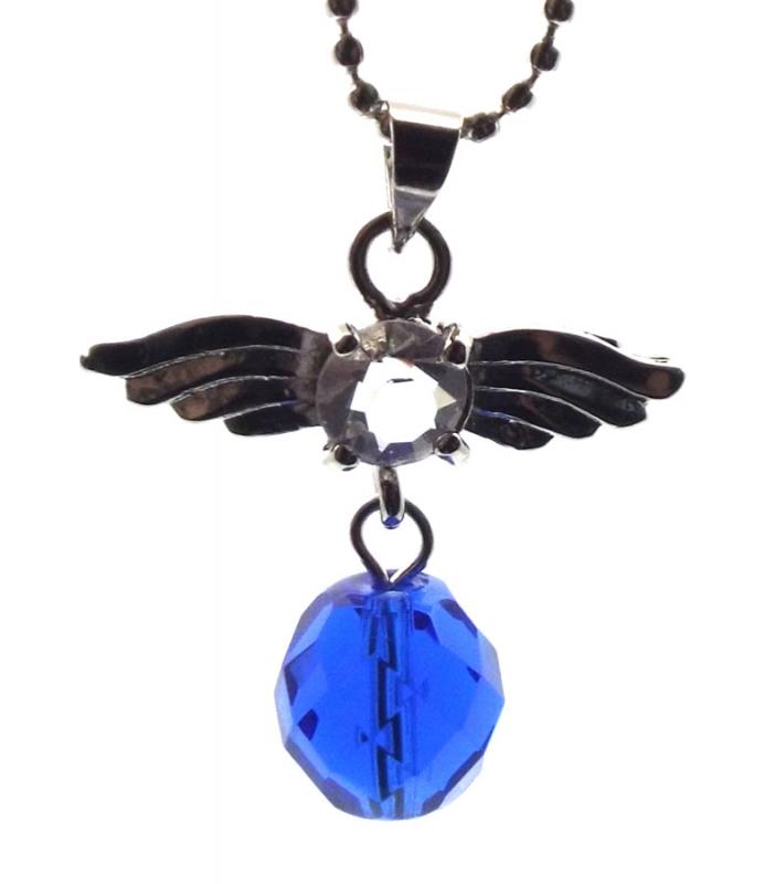 A 10mm faceted Siberian Blue Quartz bead and angel wing pendant with crystal. Complete with a 20inch ball chain. Siberian Quartz are laboratory grown synthetic seeded Quartz crystals. Measures Approx 24x27mm.