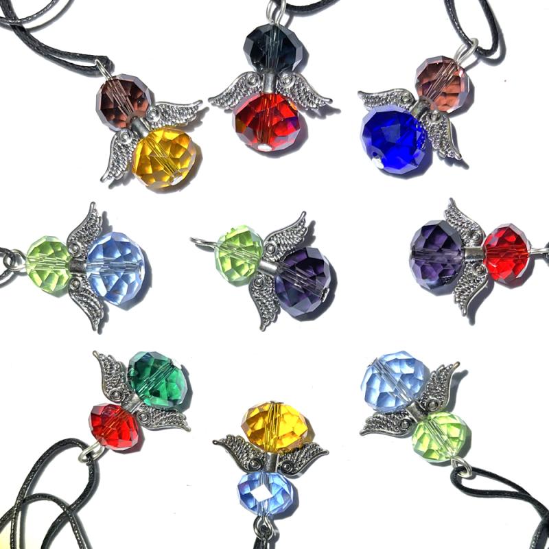 12 mm and 10 mm Glass Crystal beads, make up this pretty Angel pendant.