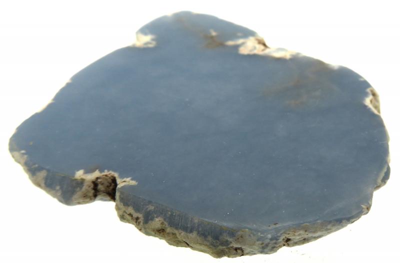 A natural Angelite specimen sliced thin and polished on one side, measuring approx 66 mm long x 51 mm wide x 6 mm depth
