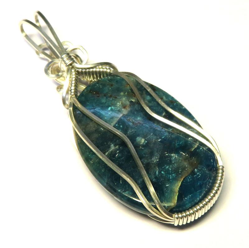 Apatite Gemstone Sterling Silver Wire Wrapped Pendant 04