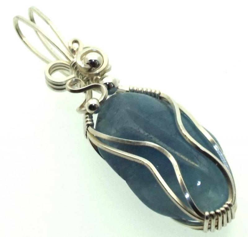 Aquamarine Sterling Silver Wire Wrapped Pendant 04