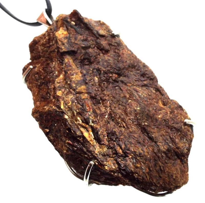 An impressive Astrophyllite Crystal set in Sterling Silver. Measures Approx 33 mm wide x 56 mm long, supplied with a long black cord.