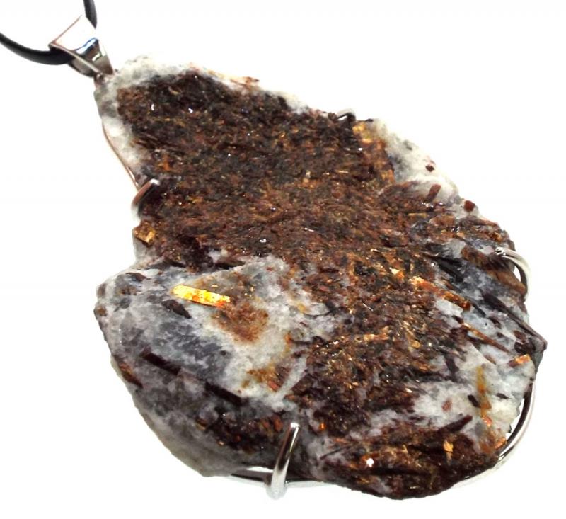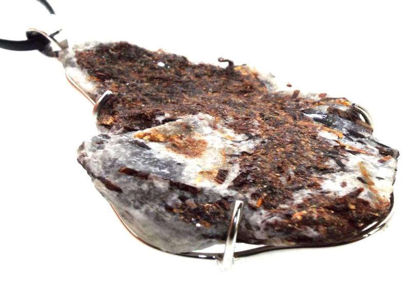 An impressive Astrophyllite Crystal set in Sterling Silver. Measures Approx 36 mm wide x 51 mm long, supplied with a long black cord.
