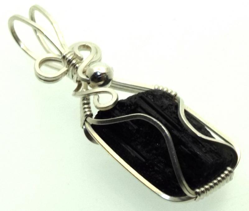 Black Tourmaline Sterling Silver Wire Wrapped Pendant 02