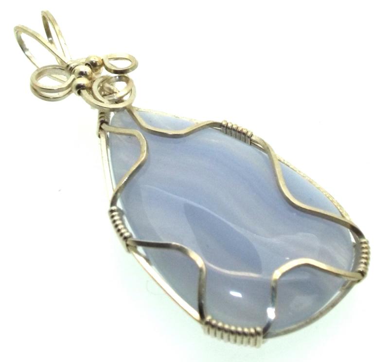 Blue Lace Agate Silver Plated Wire Wrapped Pendant 08