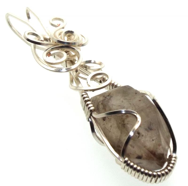 A natural Cacoxenite in Quartz point, wire wrapped with silver plated anti tarnish wire.