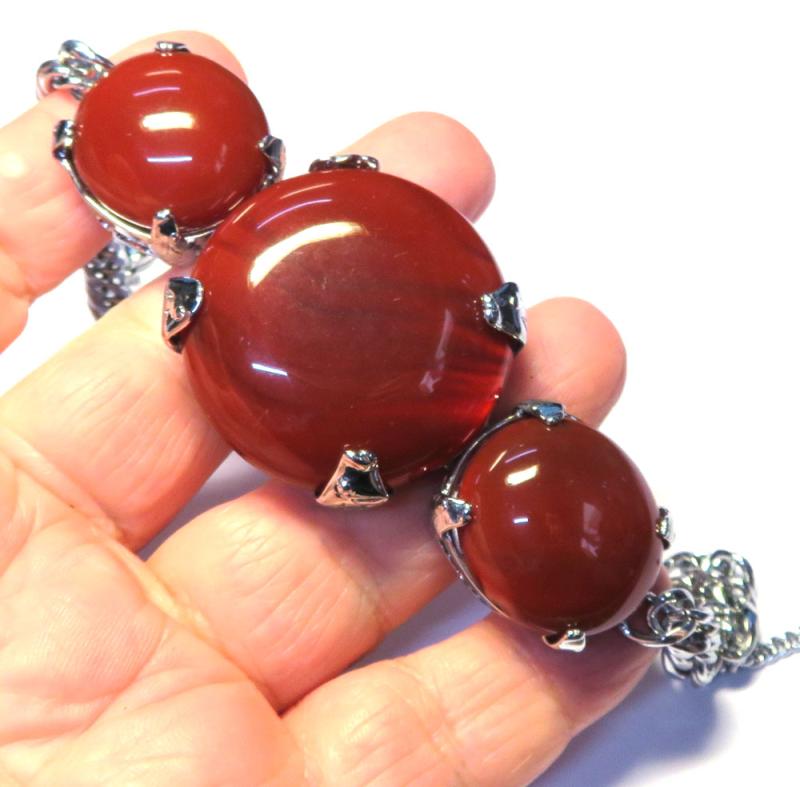 Chunky metal bracelet with a lobster claw clasp 22cm (8 inches)outstreached. Made with Genuine carnelian Gemstones.