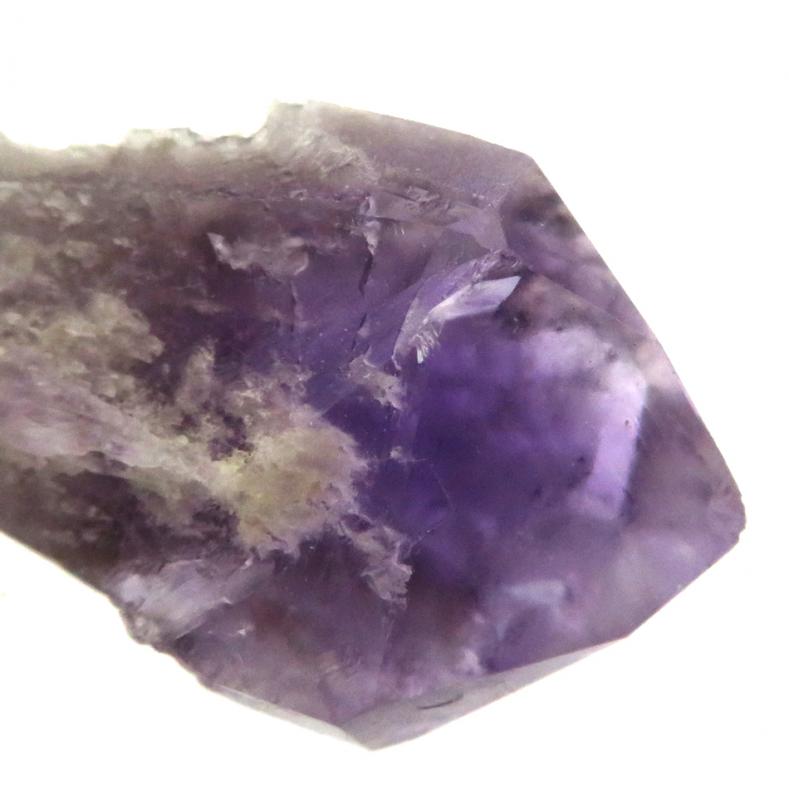 A raw Elestial Amethyst spike that measures 75 mm (3 inches) long.
