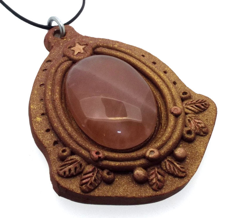 A locally hand crafted ceramic frame with a Rose Quartz cabochon Measures approx 51mm wide by 69mm tall.