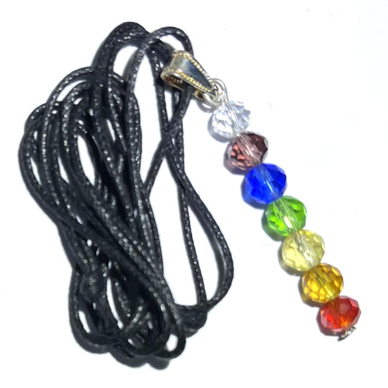 Measures Approx 40x6mm with 6x5mm faceted crystal glass beads representing the Chakra colours.