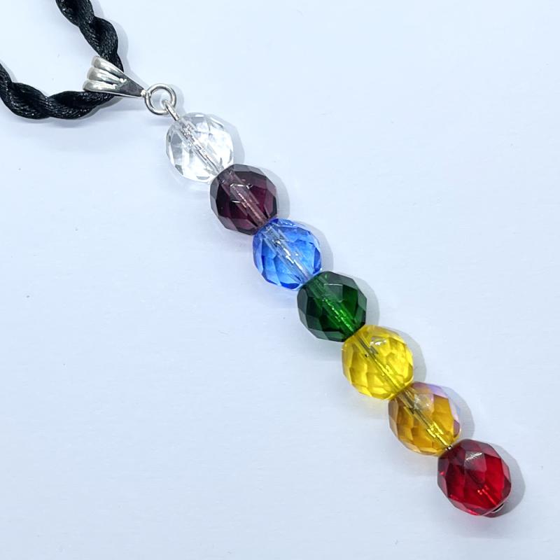 Measures Approx 75x9mm with 10x9mm faceted crystal glass beads representing the Chakra colours.