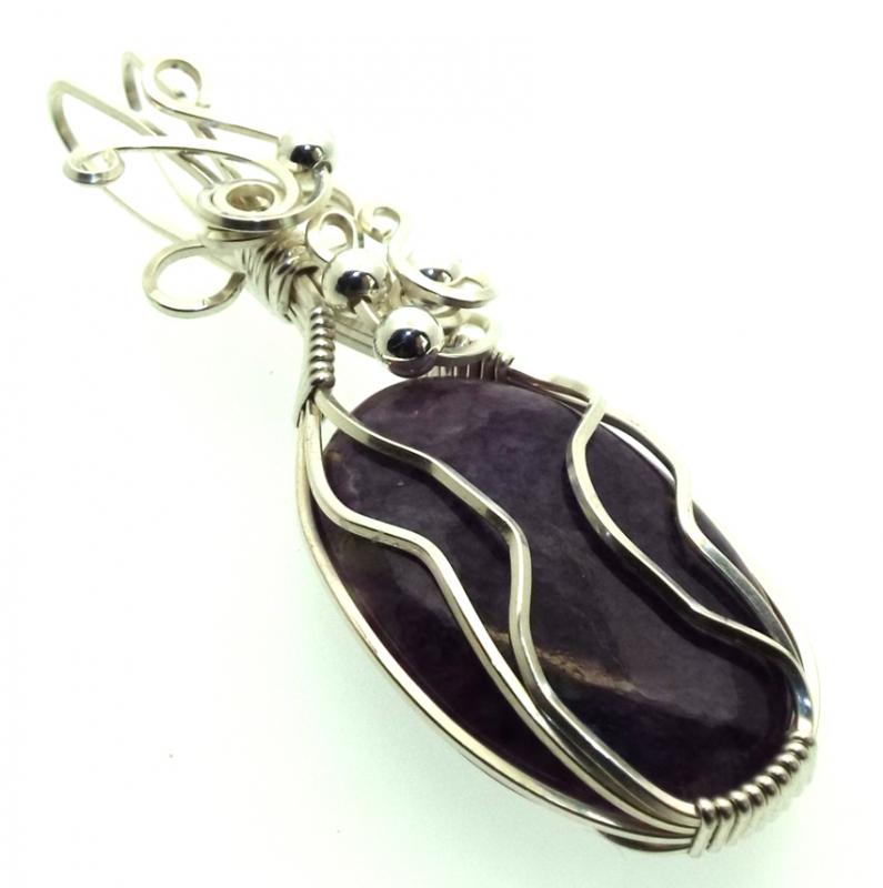 Charoite Gemstone Sterling Silver Wire Wrapped Pendant 15