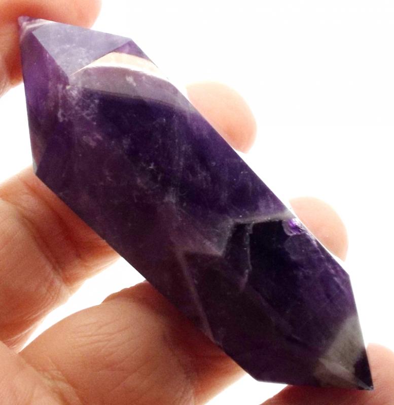 A good quality faceted double terminated Chevron Amethyst wand that measures approx 80mm (3 inches) long 25mm wide 23mm deep.