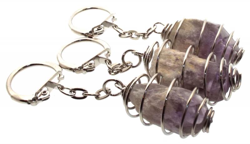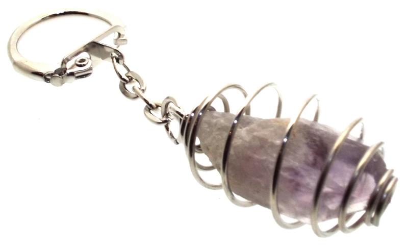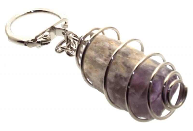 Dogtooth Chevron Amethyst Gemstone Spiral Keyring