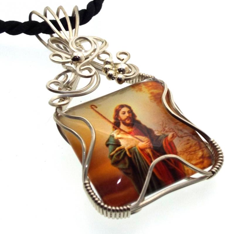 Christian Jesus Sterling Silver Wire Wrapped Pendant 02