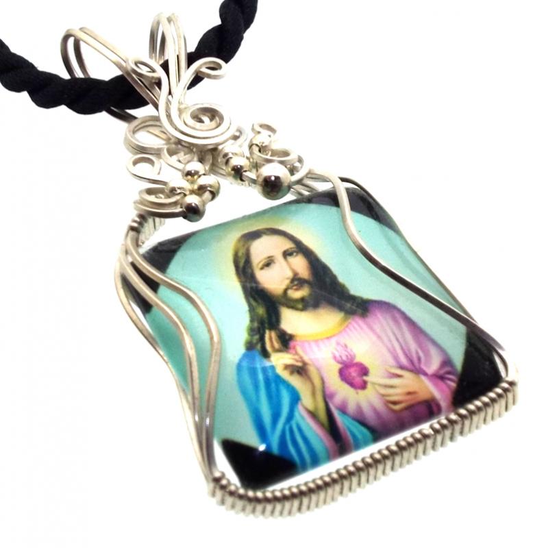 Christian Jesus Sterling Silver Wire Wrapped Pendant 03