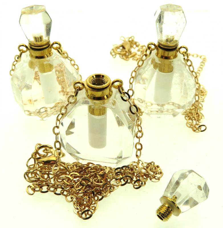 Clear Quartz Genuine Gemstone Cut Scent Bottle Pendant