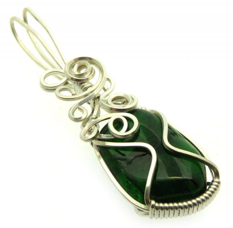 A polished Diopside Gemstone wire wrapped with silver plated anti tarnish wire.