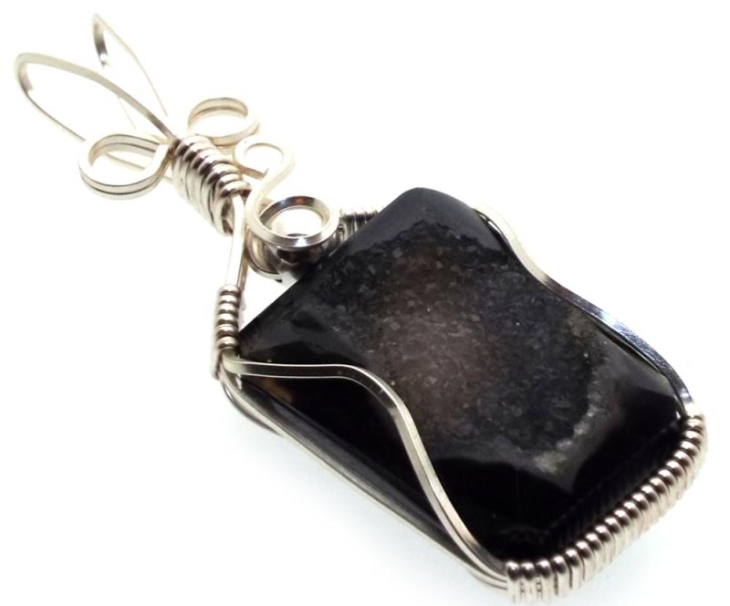 Druzy Indian Agate Silver Plated Wire Wrapped Pendant 04