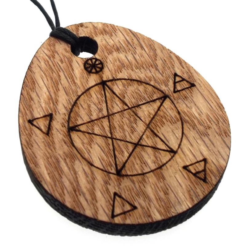 Elemental Pentacle Reclaimed Oak Slice Wooden Pendant