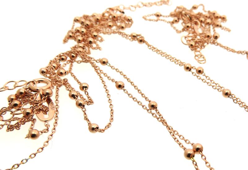 Three genuine Ethiopian Opal cabochons, mounted in Rose Gold plated Sterling Silver pendant, hung on a matching 18 inch satellite chain with ring clasp and chain extender.