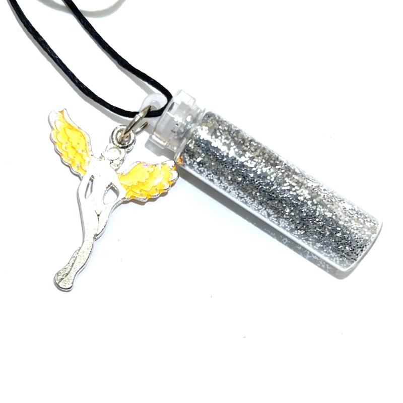 Glass spell bottle full of glitter with a fairy charm (which has random coloured wings).