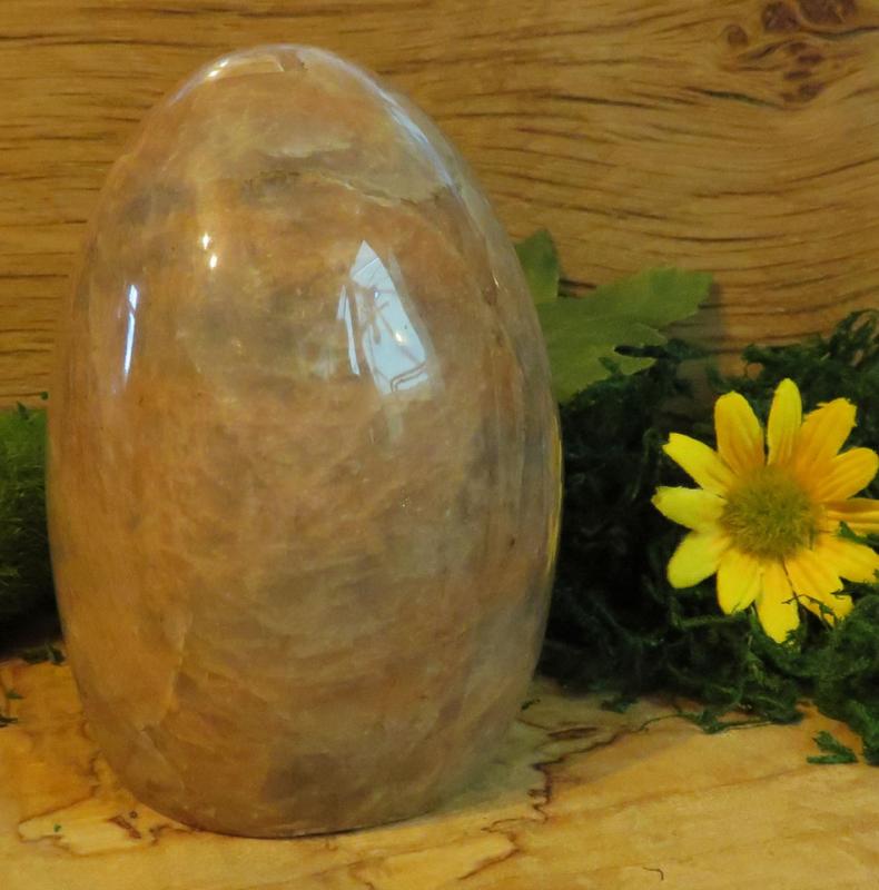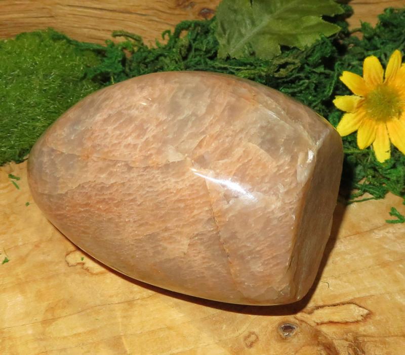 A smooth freestanding Moonstone freeform that measures 46 mm deep 51 mm wide 76 mm tall