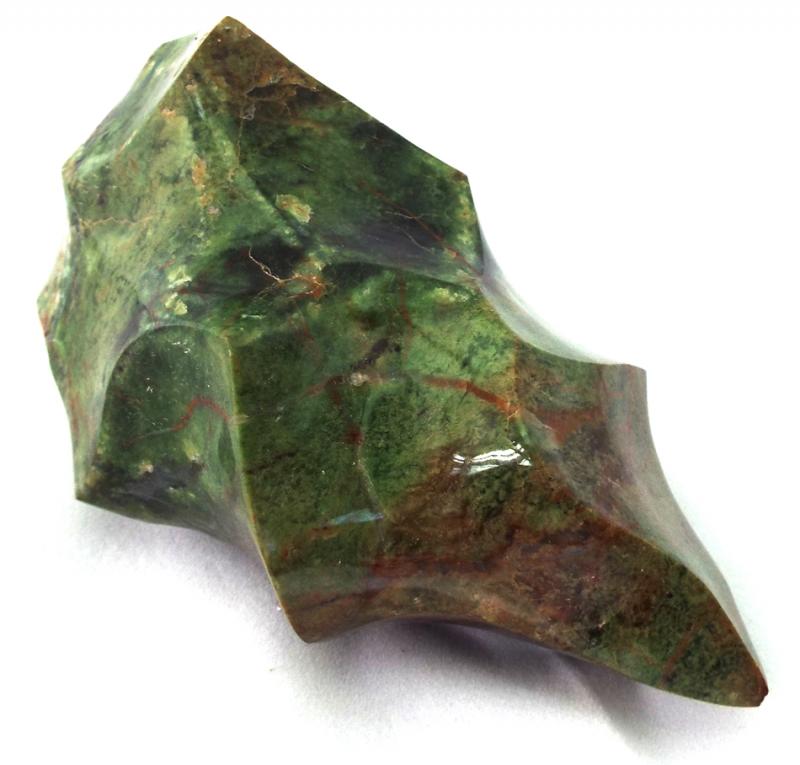 Amazing Green Jasper flame sculpture that measures approx 54 mm deep 58 mm wide 100 mm (4 inches) tall.