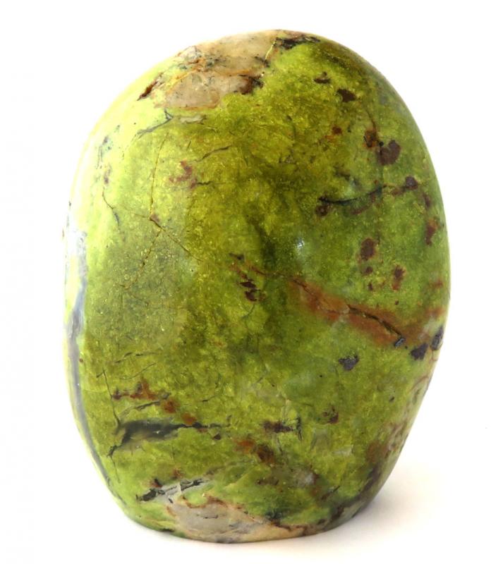 A genuine beautiful Green Opal Freeform standing Gemstone measuring approx 58 mm deep 77 mm wide 96 mm tall and weighs 542 gms.