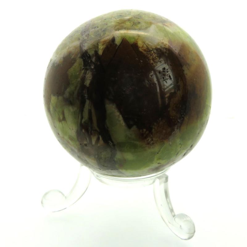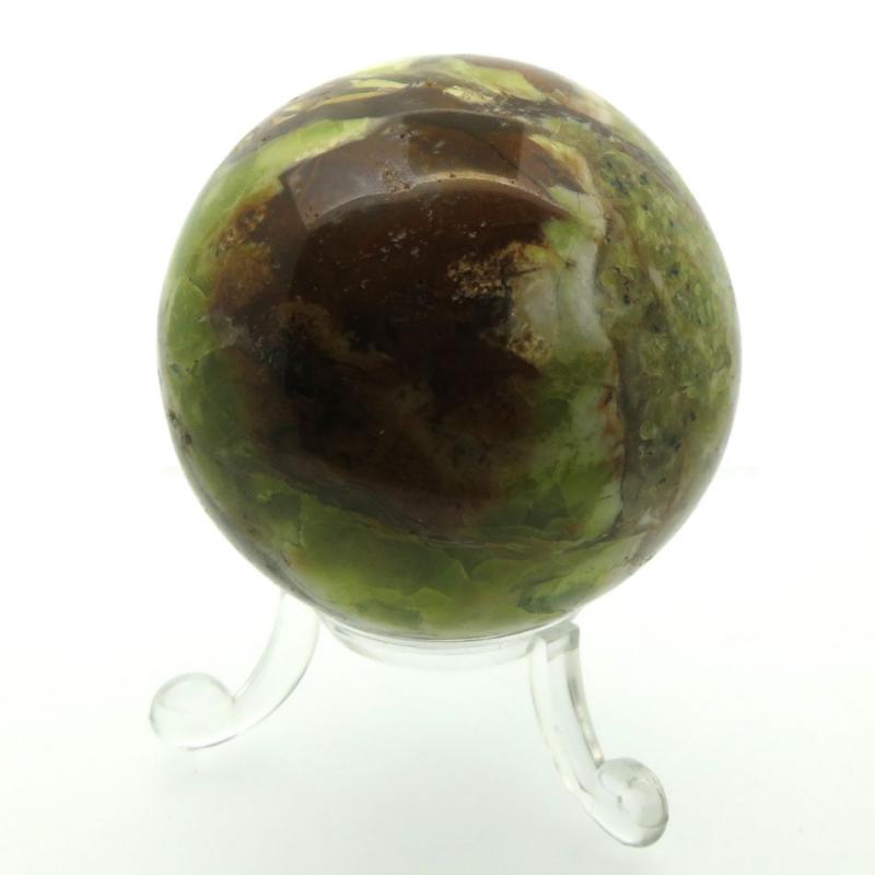 A genuine Green Opal sphere measuring 57mm diameter, supplied with a plastic stand, you will receive the pictured specimen.