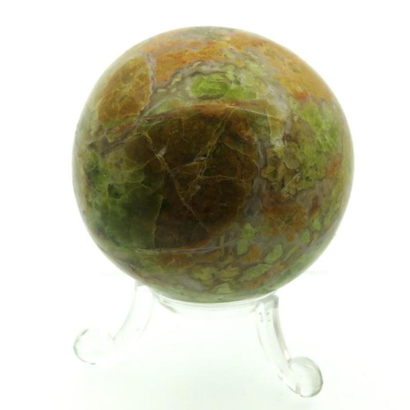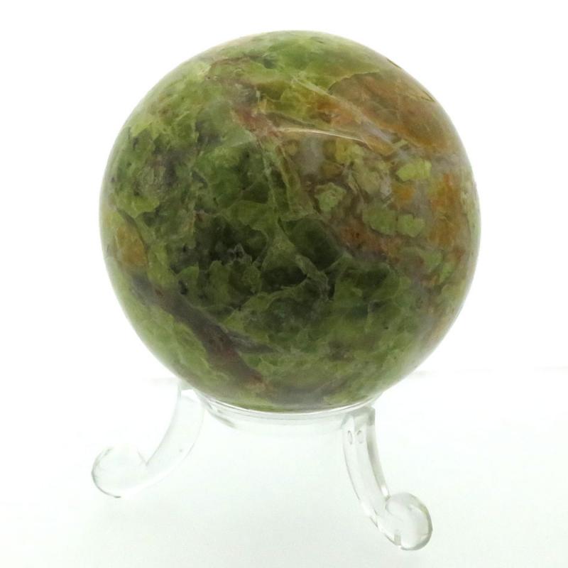 A genuine Green Opal sphere measuring 58mm diameter, supplied with a plastic stand, you will receive the pictured specimen.