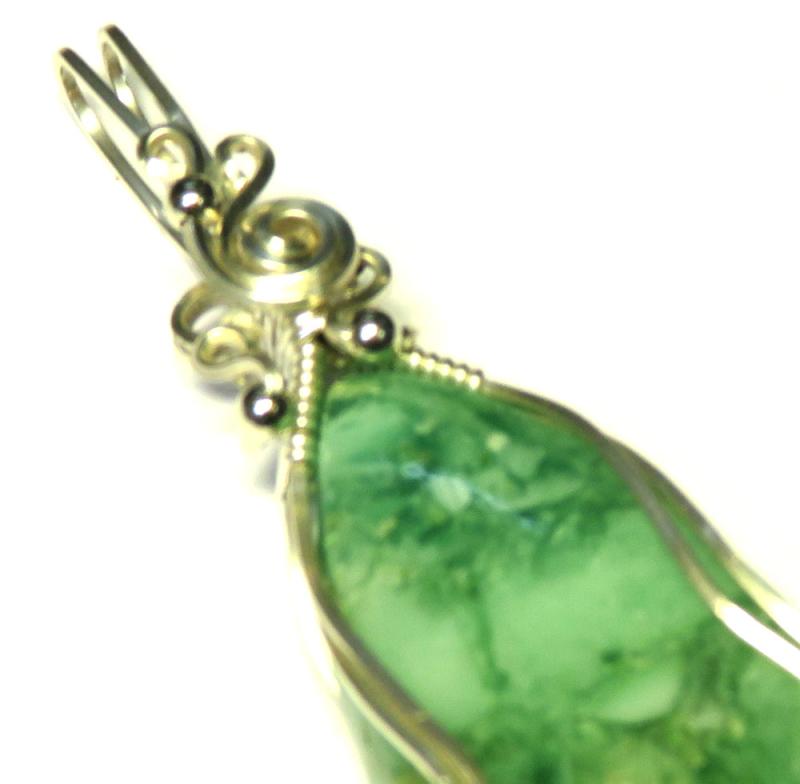 Green Opal Sterling Silver Wire Wrapped Pendant 01