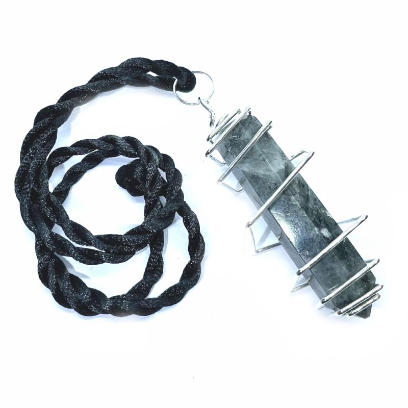 Green Rutilated Quartz Crystal Wand Spiral Pendant