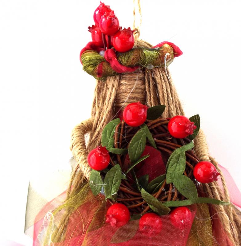 A hanging rowan goddess doll, hand crafted by Angelleesa from natural materials, with its own rowan wreath. Measures approx 16cm (7inches) tall.